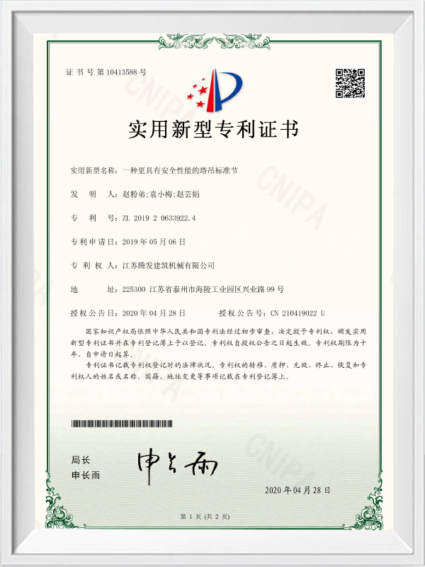 기술 혁신은 우리 회사의 기초입니다. 이 회사는 설립 이후 항상 독립 혁신의 경로를 준수했으며 타워 크레인, 건축 엘리베이터 및 기계식 주차 시스템과 같은 건설 기계 장비 제품의 독립적 인 연구 개발 및 생산에 전념 해 왔습니다.